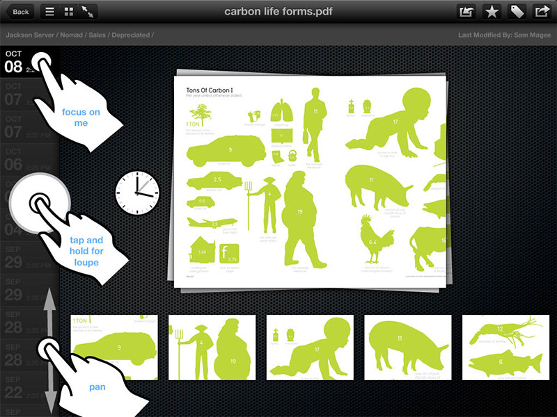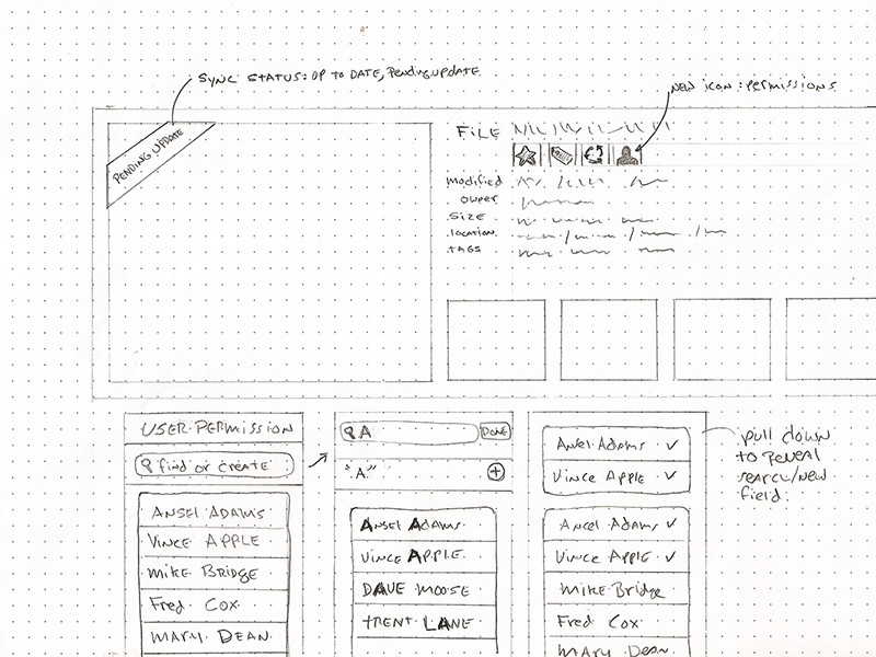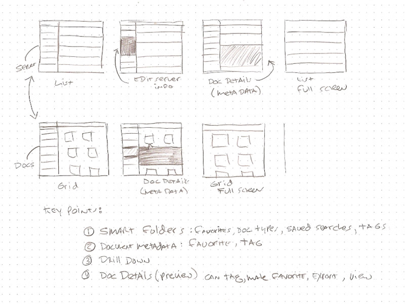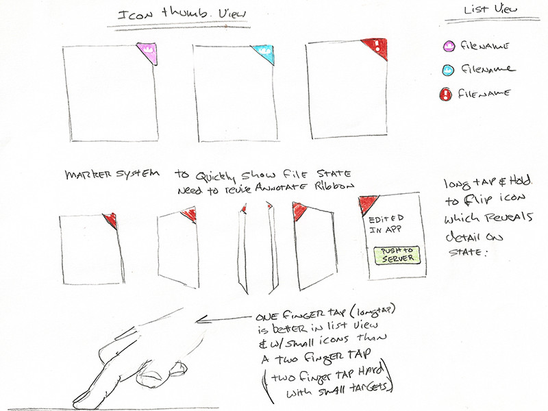 Shown below are ideas on thumbnail display, metadata layouts, and icons for file status.