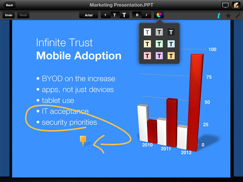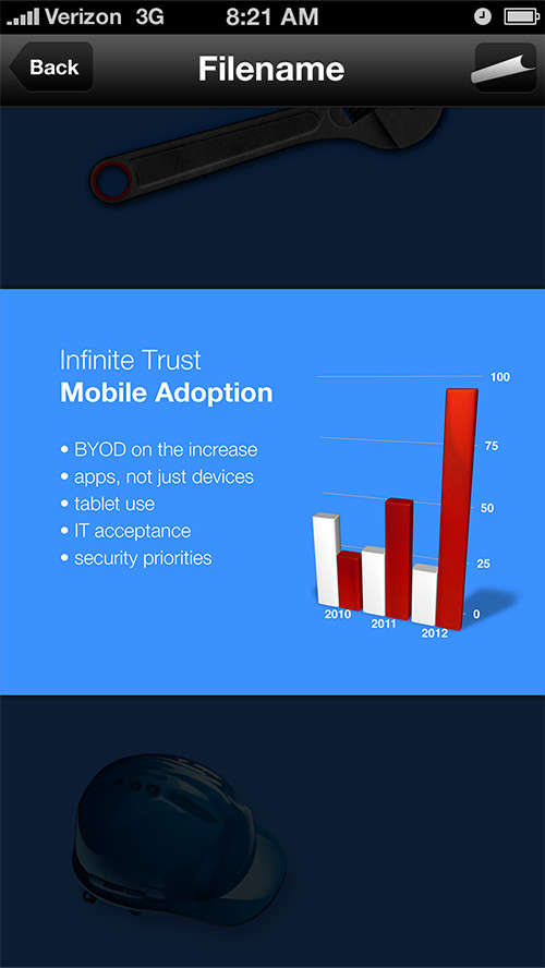We created our product for tablets. We speculated that viewing PowerPoint files on a teeny smartphone would be awful.